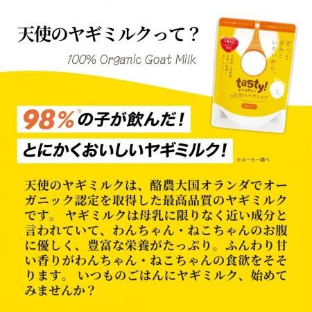 ヤギミルクは母乳に限りなく近い成分と言われていて、わんちゃん・ねこちゃんのお腹に優しく、